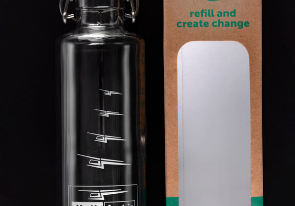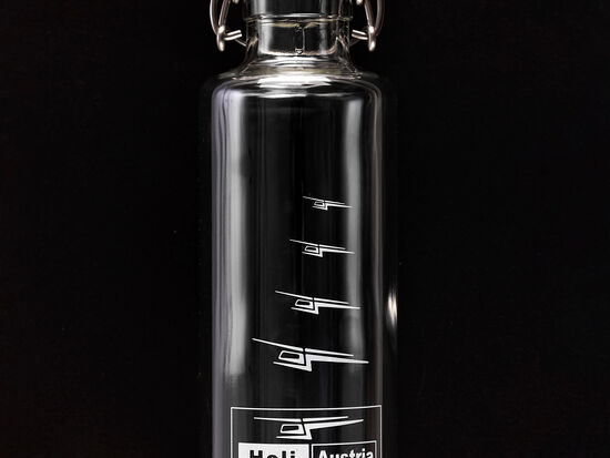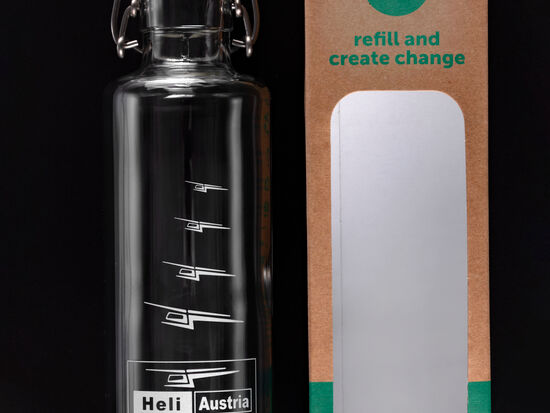 Ein echter Hingucker! Unsere neue Trinklasche aus Glas im Heli Austria Design